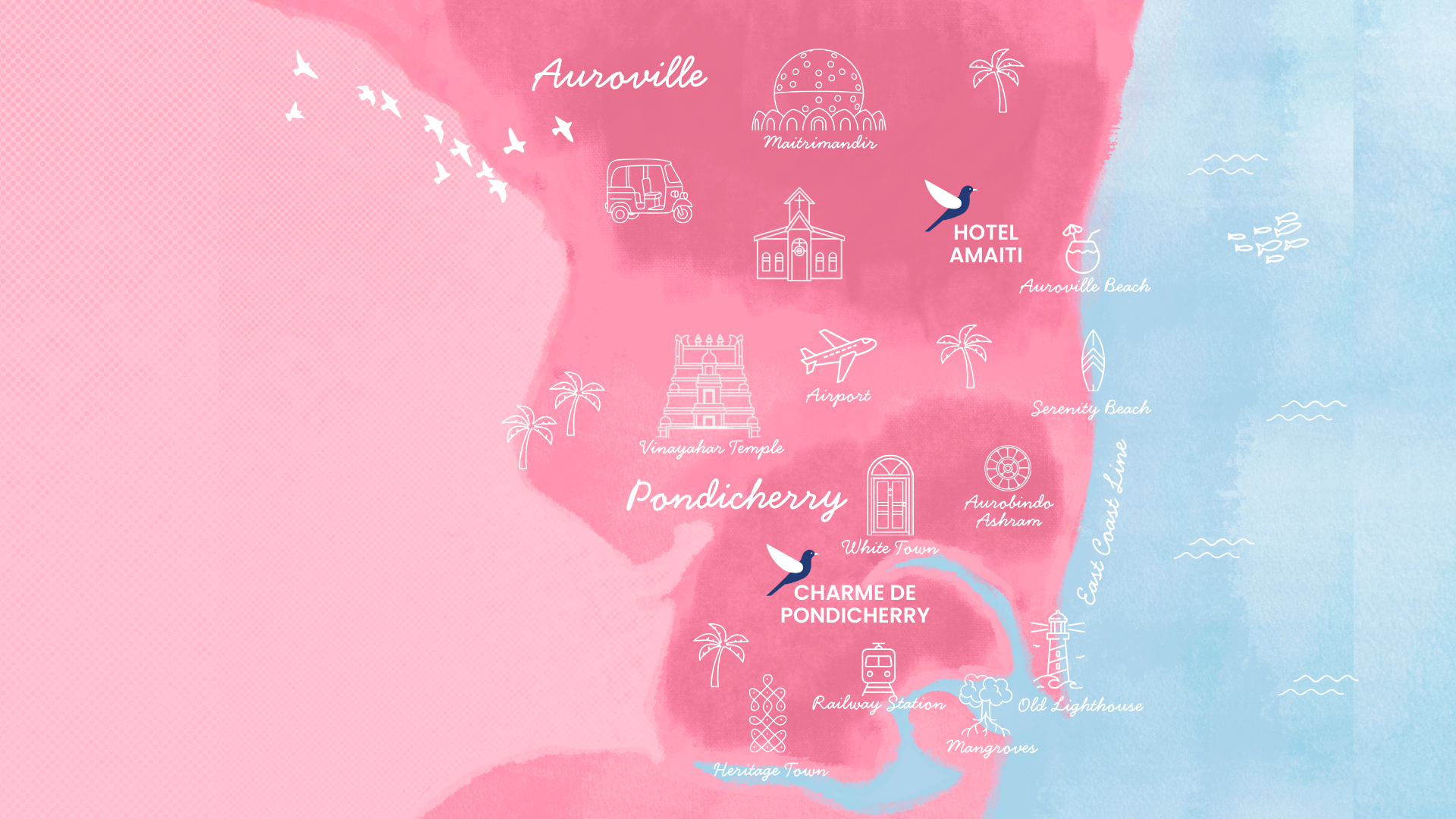 Set in a quiet neighbourhood just off the ECR, Hotel Amaiti is designed for slow, restful stays away from the rush. Strategically located between White Town & Auroville, it offers easy access to beaches, culture and calm
